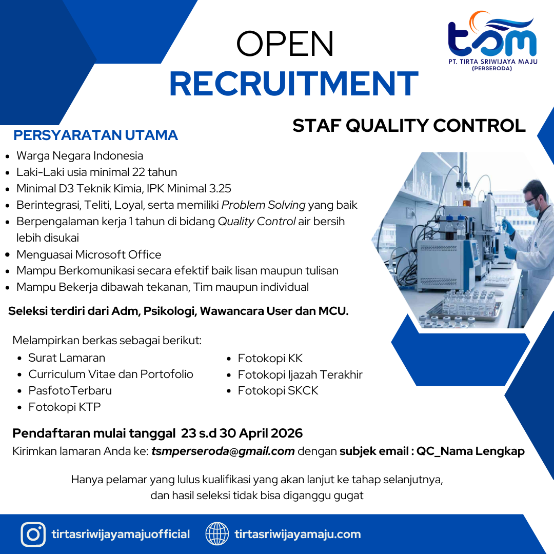Tender Bahan Kimia Soda Ash di Lingkungan PT Tirta Sriwijaya Maju (Perseroda)